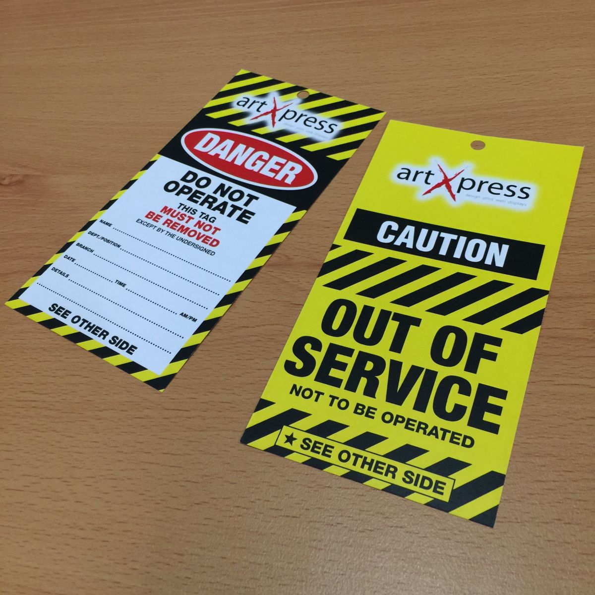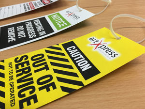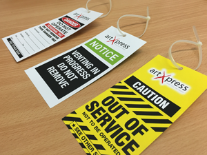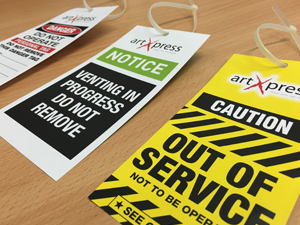 artXpress Safety Tags are a low cost solution to meet Maintenance and Safety requirements at your Facility. We can supply Tags of all shapes and sizes and include your Company Logo for Professionalism. Available in Weather Resistant or Plain Paper, for every application. .